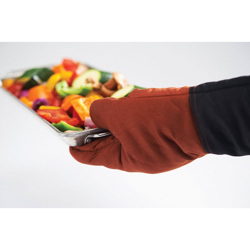 Захистіть руки від полум'я, гарячих ручок і всього іншого, що може бути гарячим. Рукавичка виготовлена з двох тонів чорної та синьої бавовни.