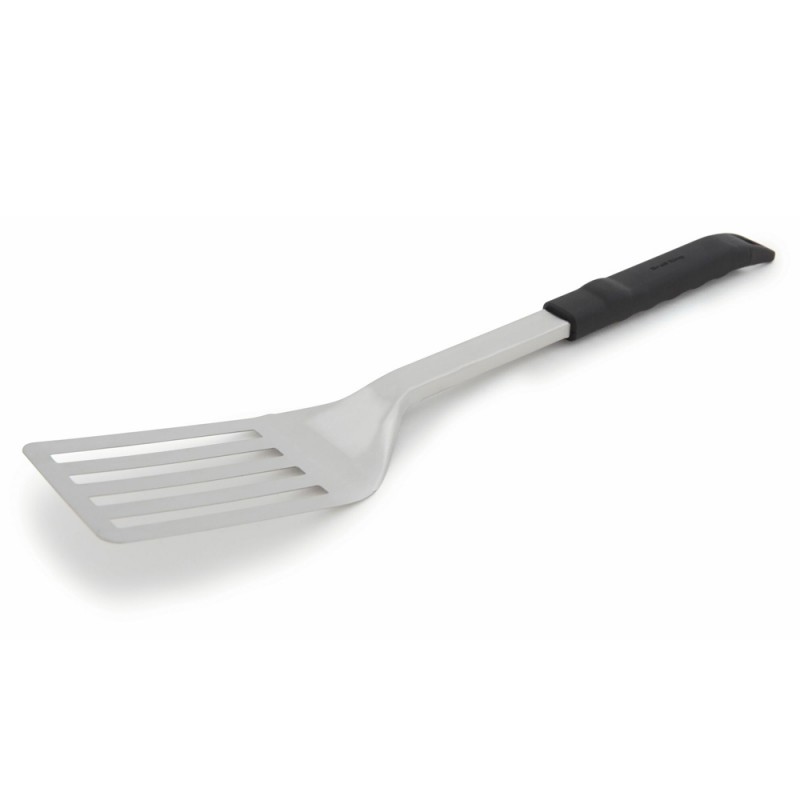 Лопатка Broil King виконана з нержавіючої сталі, з отворами для зливу соку та жиру. Ручка виготовлена із термостійкого пластику. Завдяки тому, що лопатка широка, нею можна перевертати великі шматки м'яса чи риби. Ручка лопатки стійка до нагрівання.