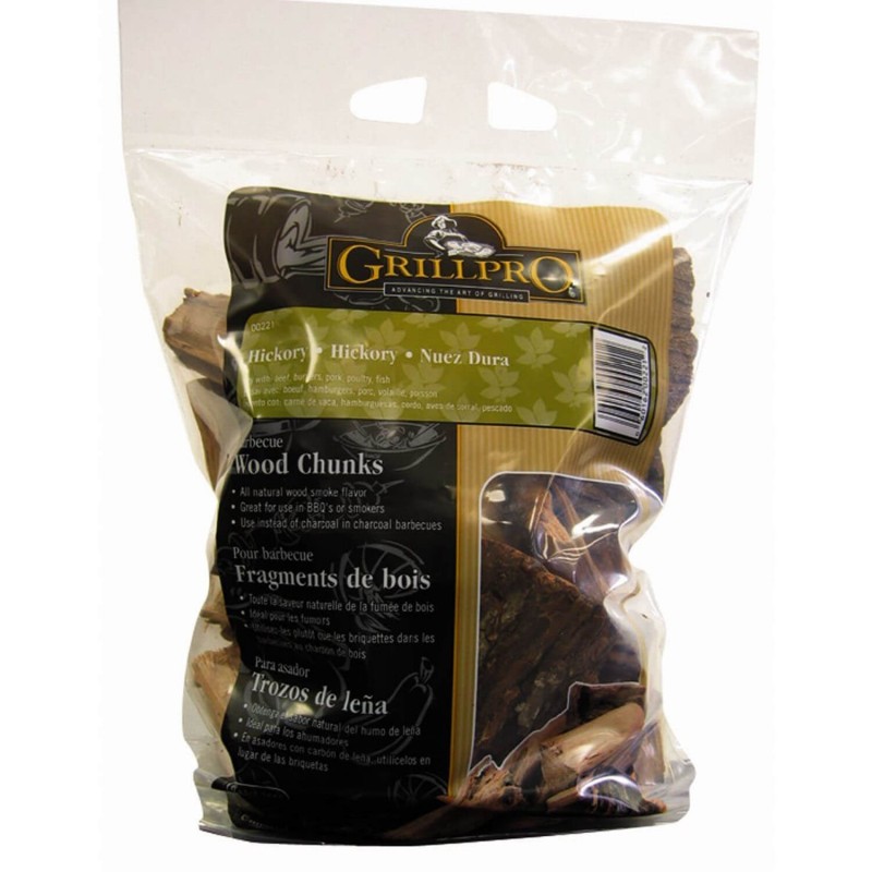 Деревина HICKORY надає страві гострого, димного аромату. Великий фракції. Підходить для свинини, курки, м'яса та сирів. Для тривалого копчення.