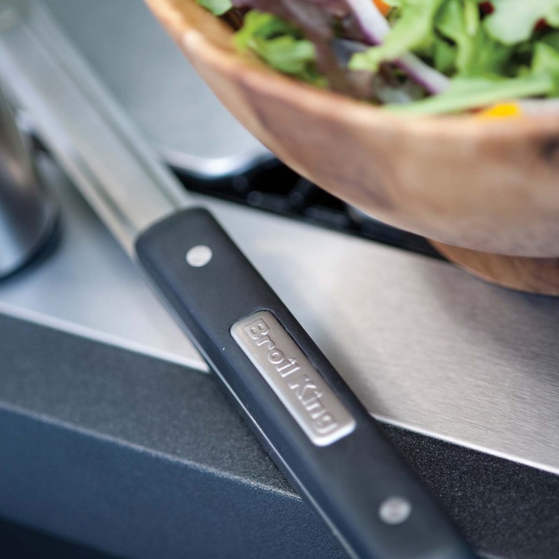 Професійний набір інструментів для гриля від компанії Broil King включає в себе лопатку, щипці, грубу металеву щітку, а також силіконовий пензлик. Всі інструменти виконані з високоякісної міцної нержавіючої сталі, якість якої задовольнить навіть самих вимогливих користувачів та оснащені ергономічними ручками з термостійкого бакеліту, які дадуть можливість безпечно працювати на грилі навіть при дуже високих температурах. Набір включає 4 предмети. Матеріал: високоякісна нержавіюча сталь. Матеріал ручок: термостійкий бакеліт. Матеріал пензлика: термостійкий харчовий силікон. Товщина металу: 1,8 мм.
