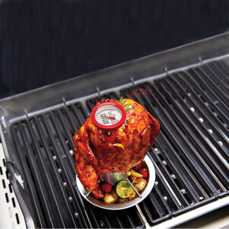 Термометр для м'яса з силіконовою панеллю для легкого видалення залишків їжі, що приготувалася. Ви отримуєте точну температуру страви для забезпечення її правильної теплової обробки і отримання бездоганного результату. Підходить для використання в грилі або духовці.