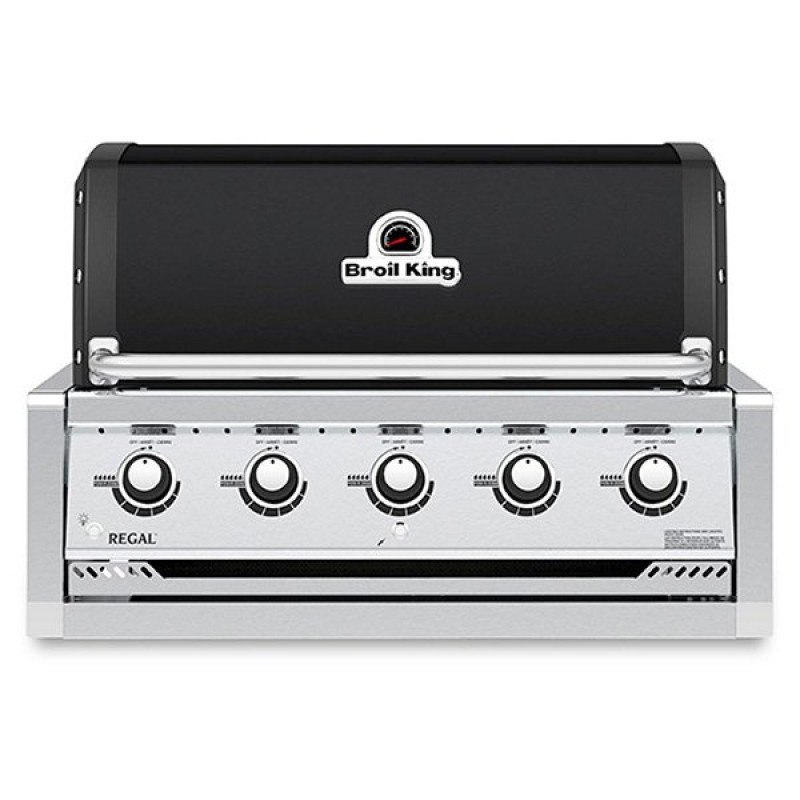 Вбудований газовий гриль Broil King® REGAL™ Built-In 520 має камеру із загальною робочою площею 5947 см2 на 5 решіток Flaw-R-Cast ™ з чавуну, сталева решітка для підігріву з фарфоровим покриттям, 5основних пальники з нержавіючої сталі Dual-Tube ™ та 4 арома пластини Flaw-R-Wave ™. Гриль оснащений кришкою з подвійними сталевими стінками та боковинами з литого алюмінію. з електроніки передбачено підсвічування регуляторів та електрозапалювання пальників.
