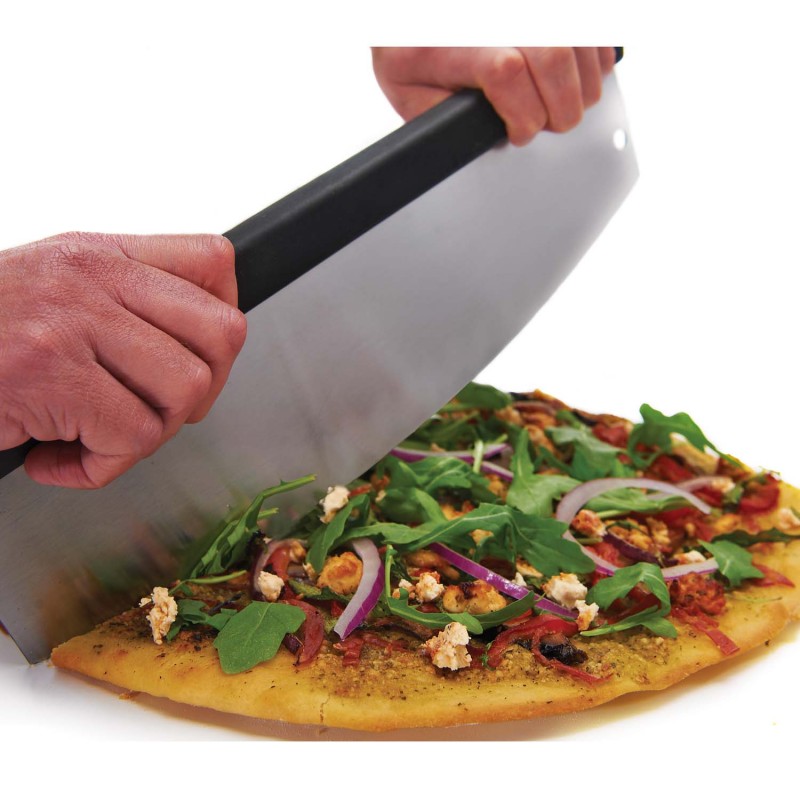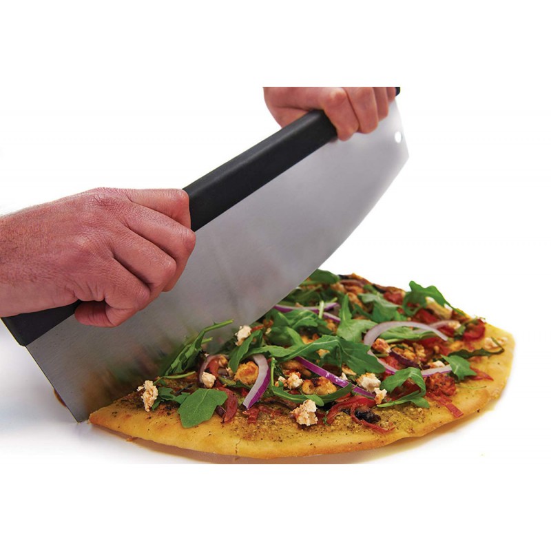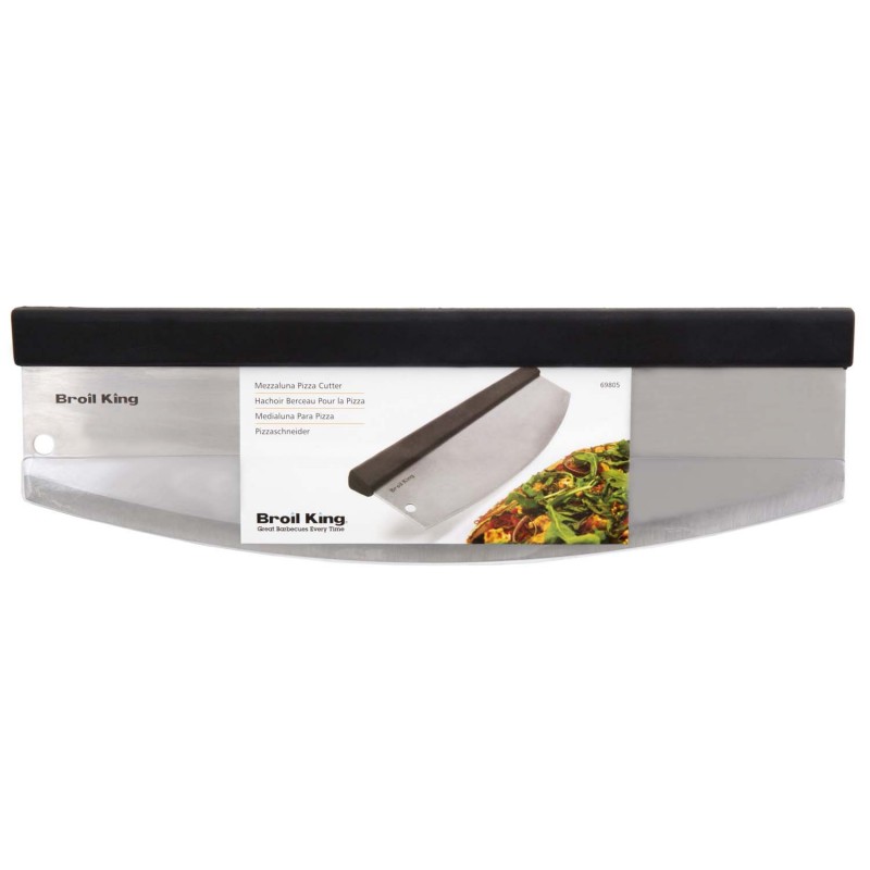 Ніж для піци Broil King 69805 – це професійний інструмент для нарізки піци простими рухами. Виконаний ніж у вигляді півмісяця, нарізка піци відбувається одинарними рухами, робите упор однією рукою з одного боку ножа, другою - натискання, отримуємо розріз. Все дуже легко і просто, а найголовніше швидко та рівно. Такий підхід до нарізки дозволяє розрізати будь-які інгредієнти піци рівно, без відходу в бік, що робить шматочок піци приємним на вигляд. Ви отримаєте велику насолоду використовуючи цей ніж, а якщо Ви раніше нарізали піцу чимось іншим, Ви відразу побачите всі переваги такого ножа в порівнянні з іншими.