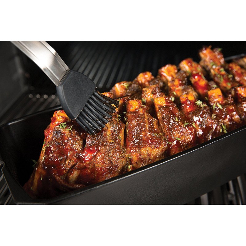 Стойка для ребер Broil King 69615 выполнена в оригинальном виде из чугуна с фарфоровым покрытием. Стойка состоит из трех частей, нижней основной части, внутренней стойки для ребер и крышки. Вы помещаете ребрышки внутрь стойки, предварительно, можно добавить на дно определенный сок, вино или другую жидкость для придания блюду неповторимого оригинального аромата.