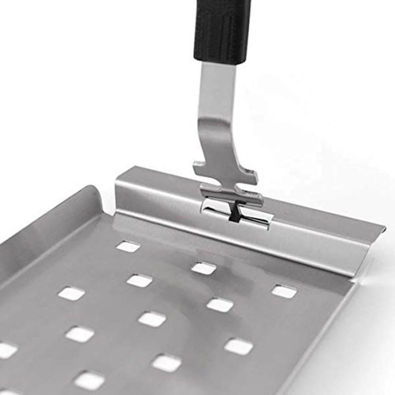 Знімач решітки - корисний та зручний інструмент, розроблений та запатентований компанією Broil King. З його допомогою Ви легко та безпечно зможете дістати чавунну або сталеву решітку. Зйомник виготовлений з високоякісної нержавіючої сталі та має ергономічну ручку, яка надійно захистить Вас від опіків.