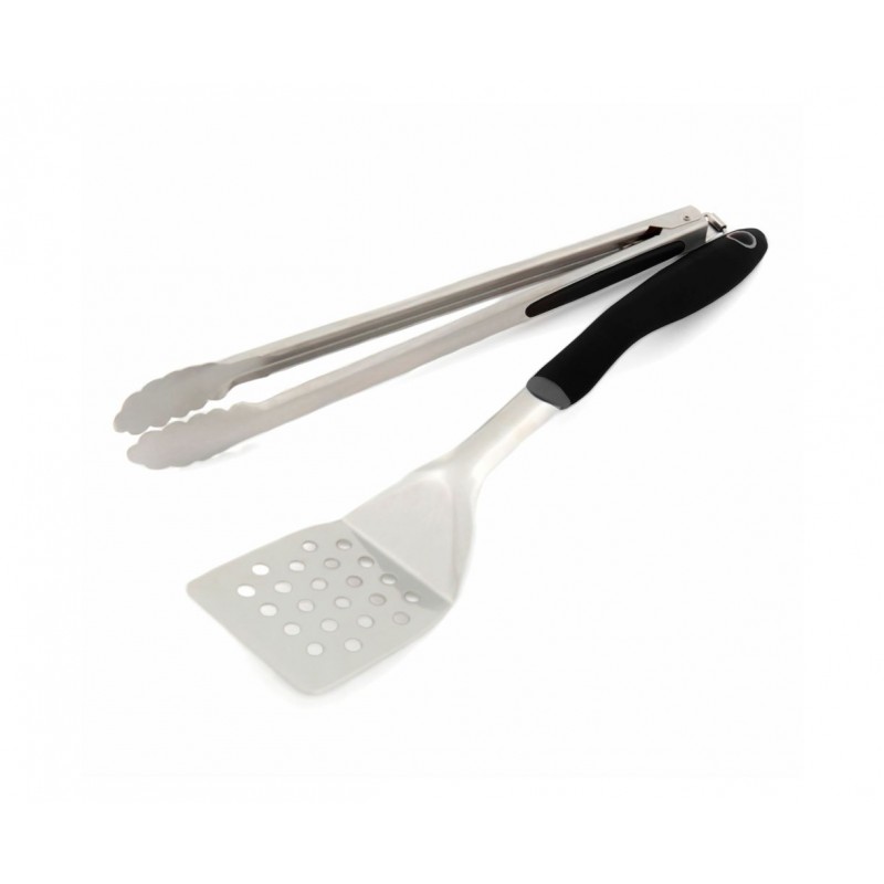 Набір для гриля з лопатки та щипців ідеальний дме для кожного грилера. З ним ви зможете швидко та безпечно справлятися у приготуванні. Щипці виготовлені з нержавіючої сталі із силіконовими накладками для захисту від опіків. Завдяки хвилястим кінцям, ви міцно захоплюєте продукт і він не зісковзує. Лопатка також виконана з нержавіючої сталі із термостійким силіконом. Її форма дозволяє акуратно перевертати котлети на грилі, не пошкодивши їх.