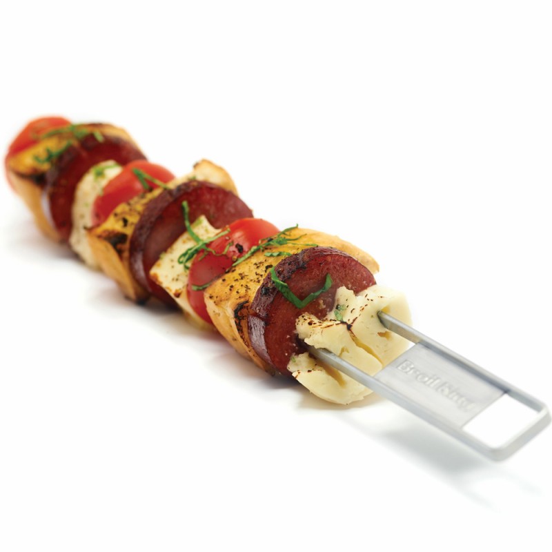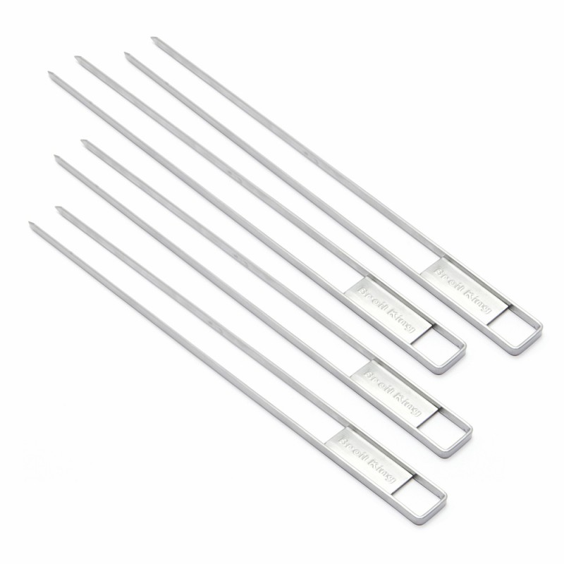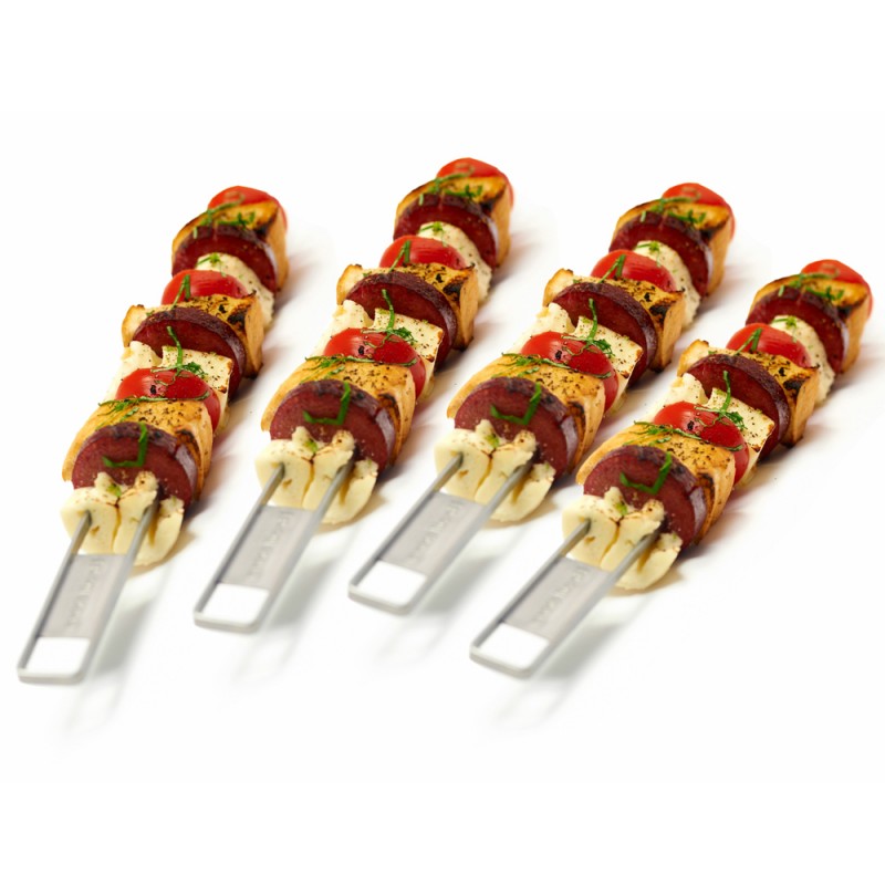 Міцні шпажки з нержавіючої сталі з двома зубчиками надійно утримають продукти, їх легко повертати завдяки зручним ручкам. У набір входить 4 шпажки.