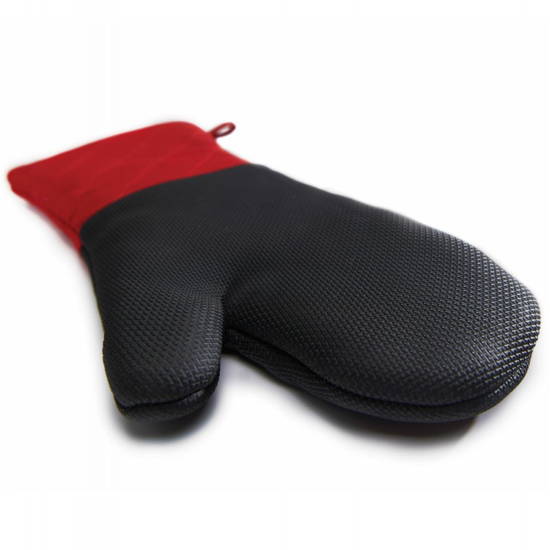 Перчатка из неопрена стандартного размера защитит вашу руку от жара. В чёрном цвете, украшена ярким красным манжетом, можно промывать над проточной водой.