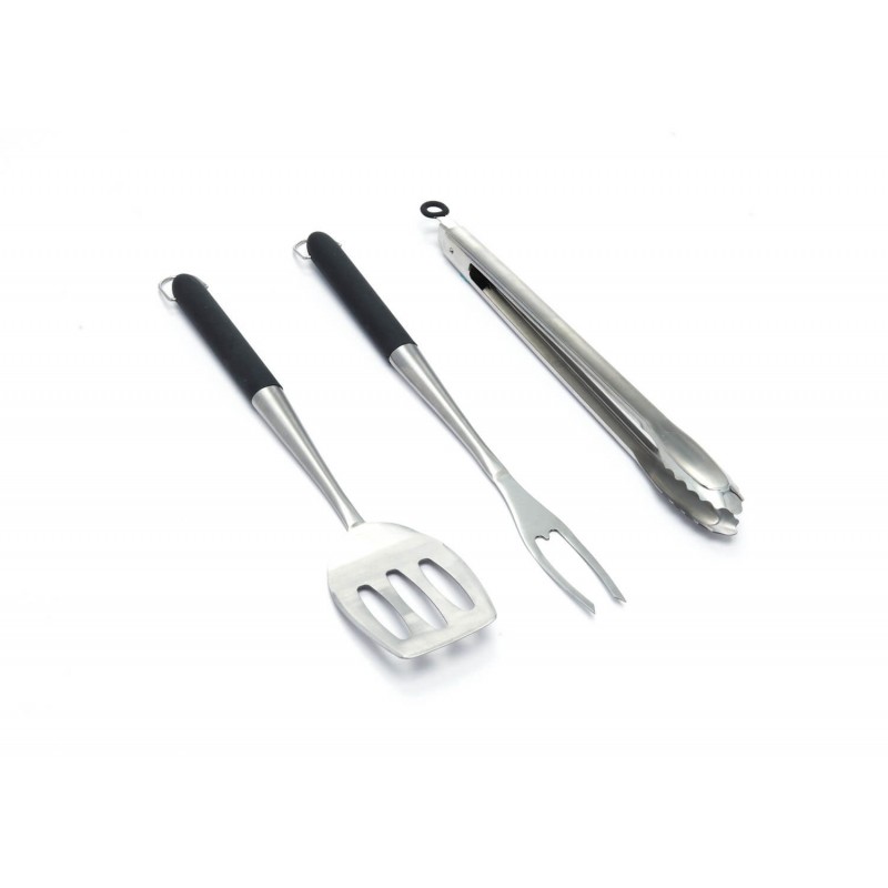 Простой и элегантный набор инструментов для гриля включает в себя универсальные щипцы для гриля, широкую лопатку и большую вилку для мяса. Все инструменты изготовлены из высококачественной нержавеющей стали, а вилка и лопатка оснащены защитными эргономичными ручками из мягкого силикона. Отлично гармонируют с грилями Broil King серии Sovereign.