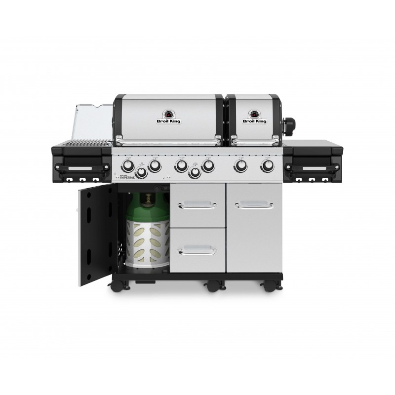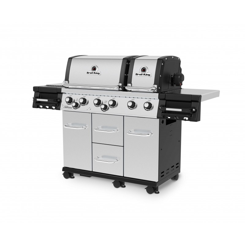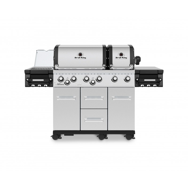Гриль Broil King Imperial S 690 IR газовый серебряный (997983) - топовый представитель премиум линейки от производителя Broil King. Гриль оснащён двумя раздельными закрытыми камерами с 6-тю горелками, что позволяют готовить одновременно разные блюда, соблюдая их тонкости в температурном режиме и в прямом/непрямом методе гриллинга; двухсторонними массивными небьющимися решётками с литой нержавеющей стали; вертелом на 4 вилки и горизонтальной горелкой; большим количеством шкафчиков и шухляд; боковыми стационарными столиками с подставками для соусов, специй, бутылок и крючками для аксессуаров с передней части; боковой инфракрасной конфоркой которая может разогреваться до 927°С, что позволяет быстро запечатать стейк и сохранить его сочность. А подсветка внутри камер и регуляторов не только поможет при процессе в тёмное время суток, но также станет окрасой вечера. Сам по себе, этот гриль является атрибутом престижа, стиля и достатка.