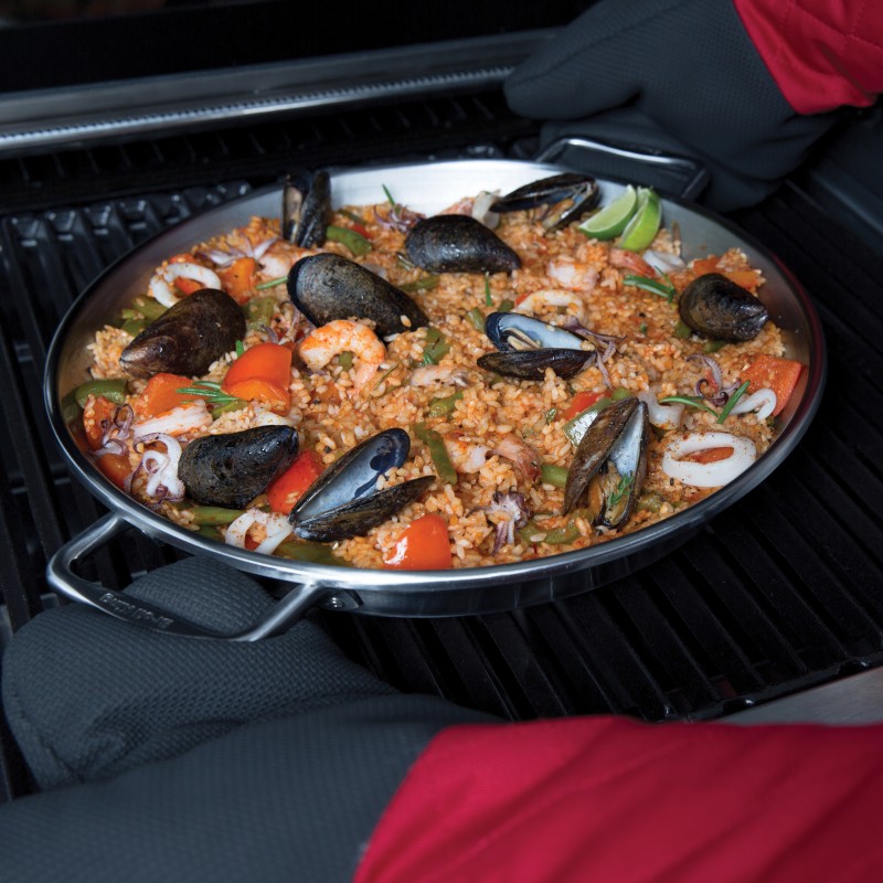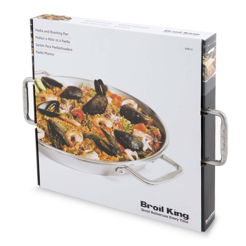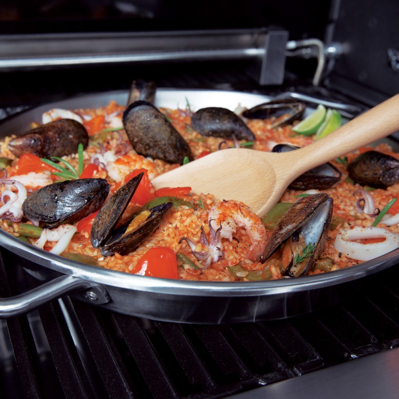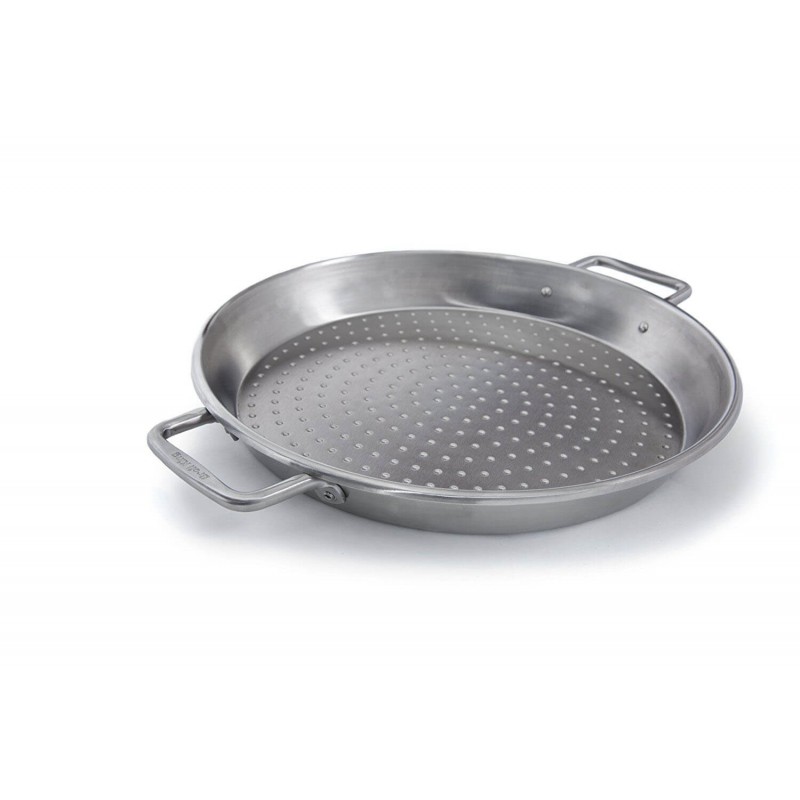 Классическая сковорода для паэльи от Broil King. Изготовлена из высококачественной нержавеющей стали. Имеет перфорированное дно для стекания излишней влаги, благодаря чему, отлично подходит для запекания рататуев или других овощных блюд на гриле.